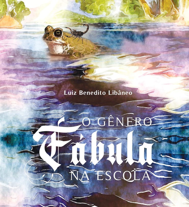 A capa, ilustrada em belíssima aquarela, retrata a clássica fábula do sapo e o escorpião, simbolizando a riqueza visual e interpretativa que o livro explora.